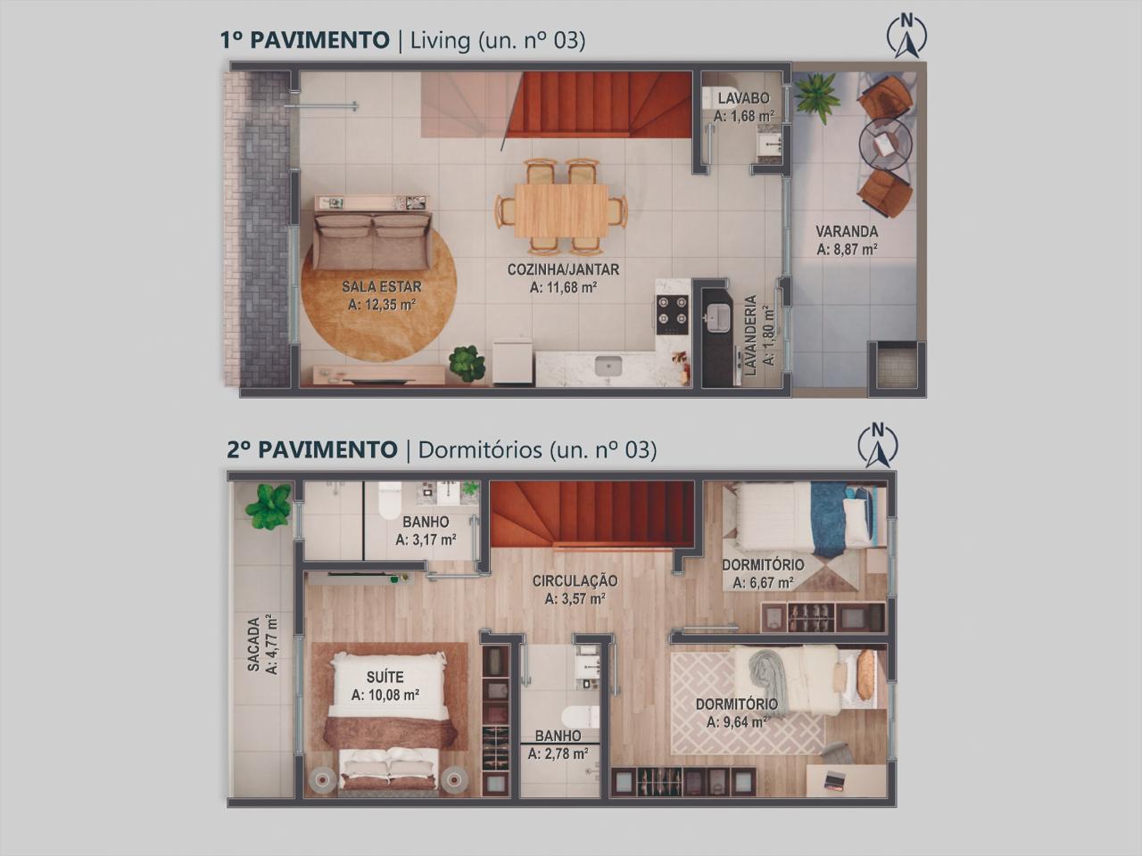 Com opções de 59,55m² a 74,67m², dois dormitórios e estacionamento próprio, os sobrados do empreendimento Triches 12º podem ser a opção ideal para você e sua família.
